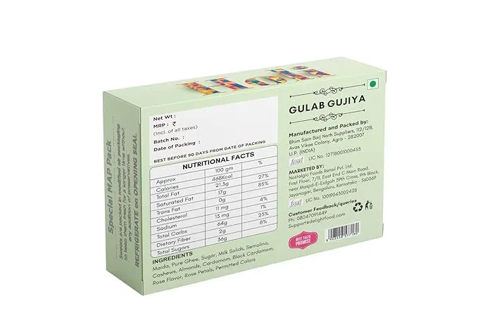 - It is filled with a rich mixture of khoya, dry fruits, and natural rose petals.