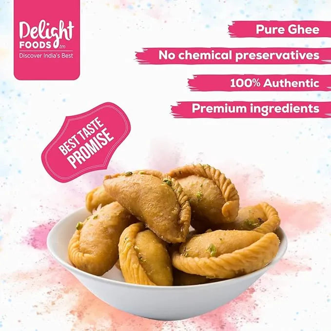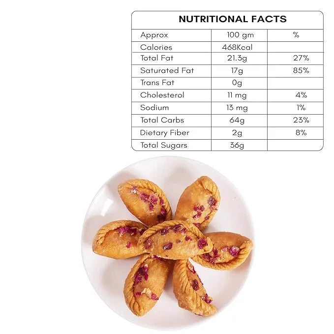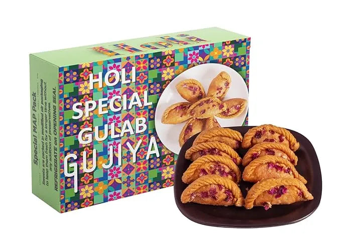 Experience the perfect fusion of tradition and elegance with our Rose Gujiya. This handcrafted delicacy features a golden, crispy crust infused with the subtle aroma of roses. The luxurious filling combines sweetened khoya, premium dry fruits, and a hint of rose petals for a floral twist that will tantalize your taste buds. Celebrate special moments or treat yourself to this unique, artisanal dessert that's as beautiful as it is delicious.