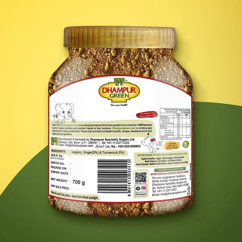 Haldi & Sonth Jaggery (Turmeric & Ginger) Powder 700gm - Dhampur Green