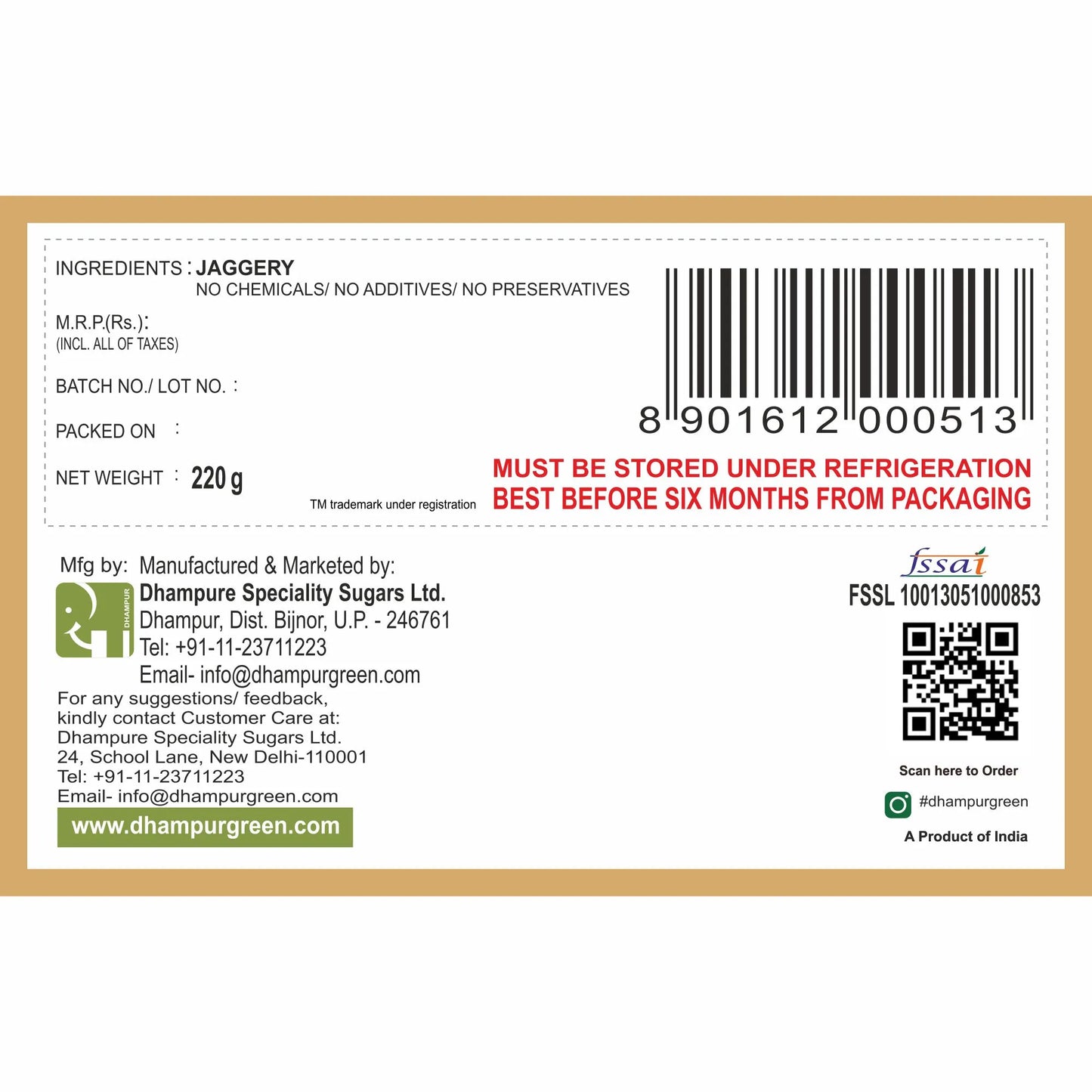 Natural Pure Jaggery Gur 880gm(220g*4) - Dhampur Green