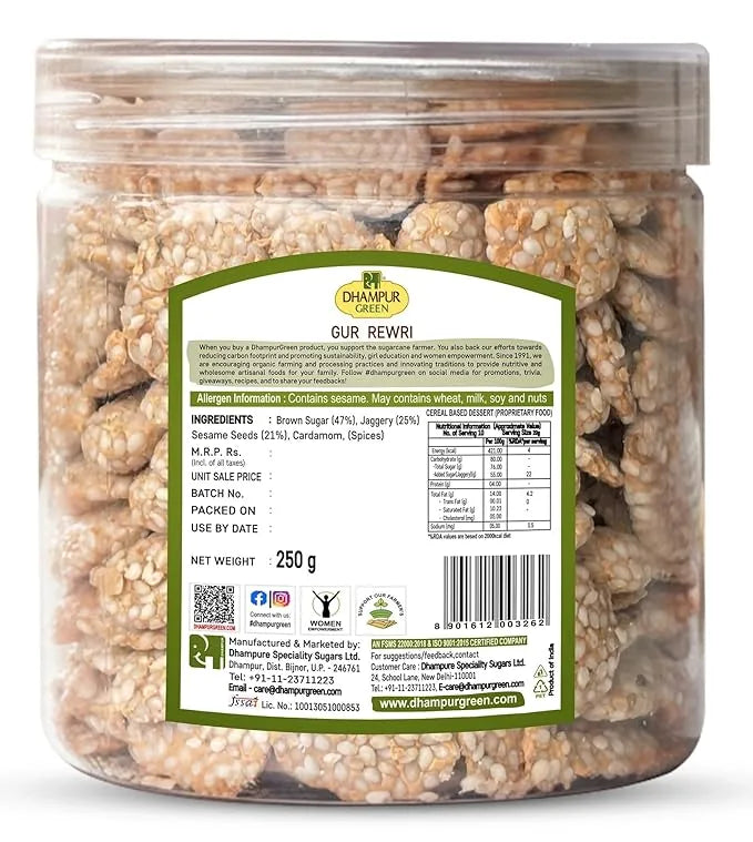 AUTHENTIC TASTE: Dhampurgreen brings you the genuine flavour of traditional Indian rewdi with the perfect balance of sweetness and nutty sesame crunch