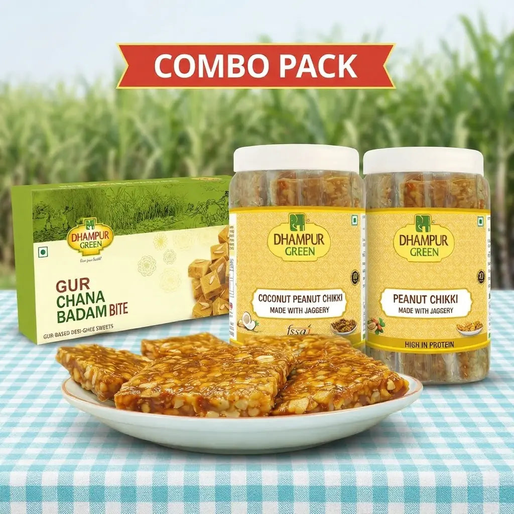 That's exactly why we made the Healthy Snacking Pack — a combo of three of Dhampur Green's most-loved jaggery snacks that taste indulgent, fuel your body with real nutrition, and don't leave you with a sugar crash 20 minutes later.