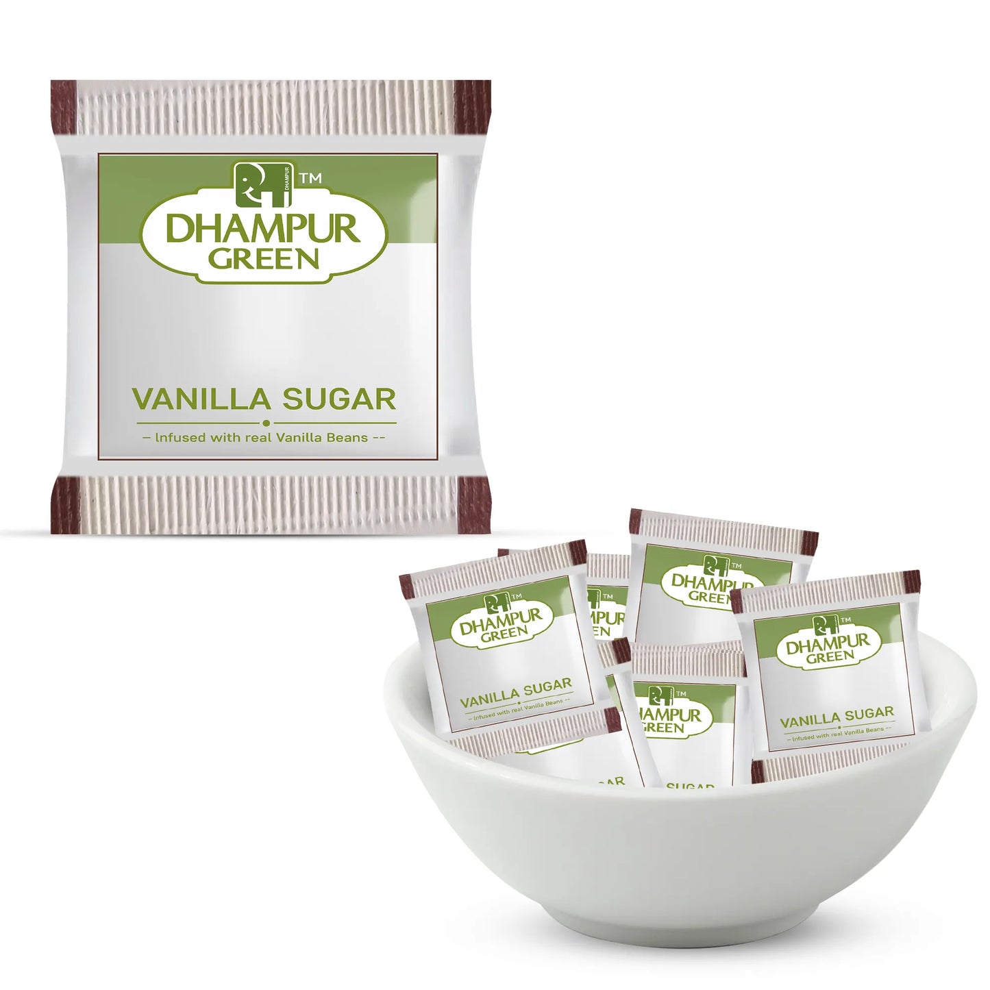 | DhampurGreen sugar sachets come in white sugar, cinnamon sugar, brown sugar, jaggery powder and Vanilla Sugar variants. Portion controlled single serve sachets by Dhampur Green are convenient, mess-free, clean and simple way to sweeten hot and cold drinks in the office, at home and on picnics. There is minimal wastage and your sweetener is easy to store and transport. The sugars dissolve instantly and this is particularly helpful when mixing sugar into cold drinks such as iced tea or shakes, smoothies, and cold coffees. It is an ideal sweetener for tea/ coffee, breakfast cereals and juices, dairy desserts, milk and puddings, bakery snacks, cakes and cooking, sweetmeat preparations and fruit and salad dressings. Dhampur Green products are all vegetarian, have no harmful chemicals and are completely untouched, hygienically packed in a dust-free environment. SACHETS IN YOUR LABEL- DhampurGreen also does pack sachets in your brand or for any corporate/ public/ catering event. Our personalized sachets will help the customer to distinguish our product from other brands. These sachets is not limited to the hotels and cafes so you can use it for your studio, boutique or even a family wedding. A small piece of the sugar sachet can be great advertising! Dhampur Green believes in delivering consistent quality of products across the year. With careful sourcing and sorting, you will find our products delivering on taste, purity and size of grains across the year. Our speciality sugar range is a perfect for creating sweet dishes such as mithais, laddus, jalebis, halwas, shikanjis, lassis and juices; and our sweet snacks range is an anytime health snack. Dhampur Green Products are hygienically packed in facility meeting food safety standards to ensure consistency in quality across the year. Made in India by a farmer-led enterprise, the production work is done by local farmers who take immense pride in creating products that add value to the lives of our consumers. Marginal farmers sell us their raw produce locally and no longer have to struggle with middlemen, strict mandi bargains or distress sales. Support the Indian Farmer. Please note: If you are on heart or sugar medication, do check with your doctor to make sure that this product doesn’t interfere with your meds. Remember to use in moderation. |